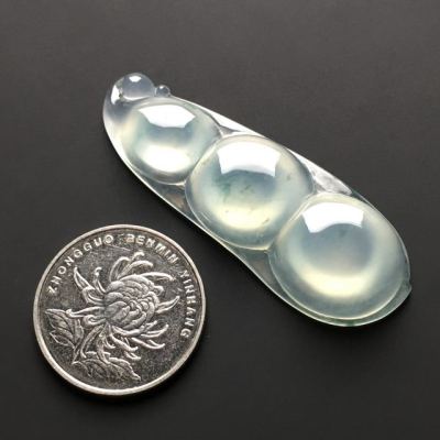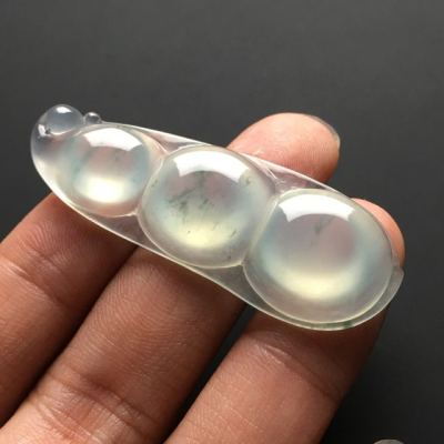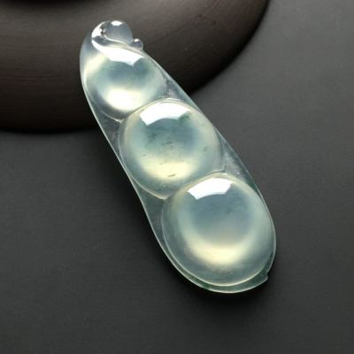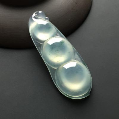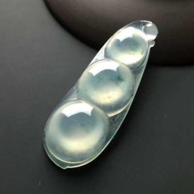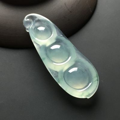 冰种飘花福豆 翡翠挂件 尺寸55-19-7毫米