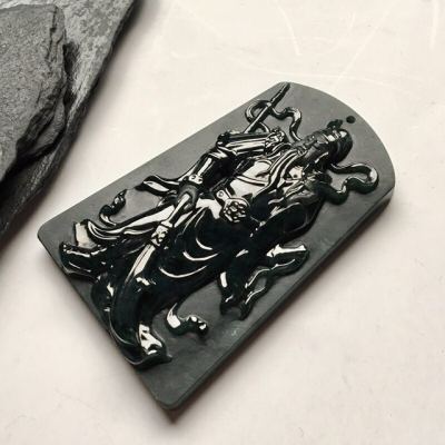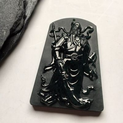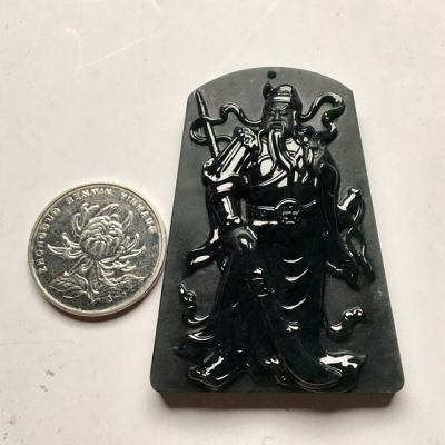 墨翠关公 翡翠挂件 尺寸: 59-41-10mm