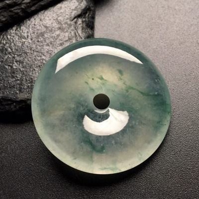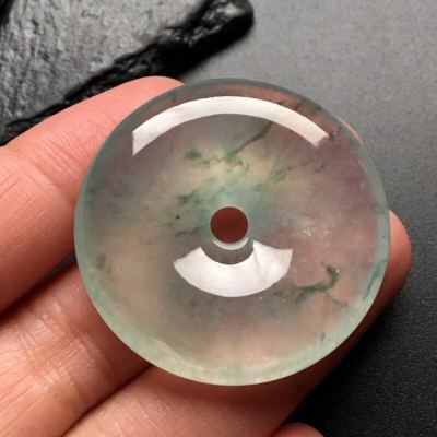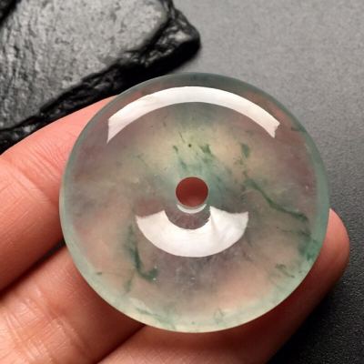 冰飘花平安扣 翡翠挂件 尺寸: 35-7.5mm