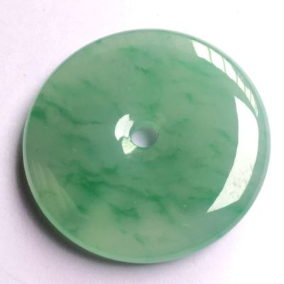 阳绿平安扣 翡翠挂件 整体尺寸:35*35*6