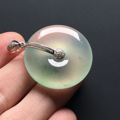 冰种飘花平安扣 翡翠挂件 尺寸:30-6.2毫米