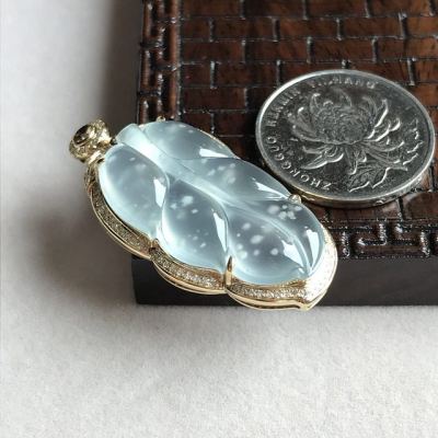 冰玻种雪花棉事业有成 翡翠挂件 裸石尺寸32.5~17.6mm