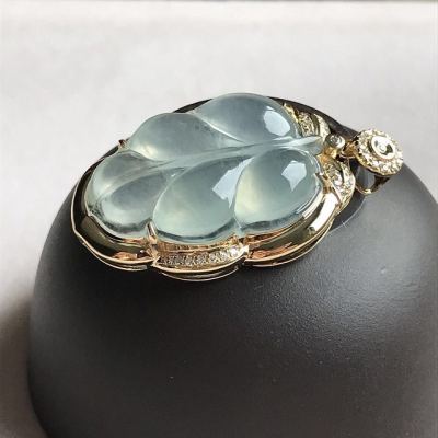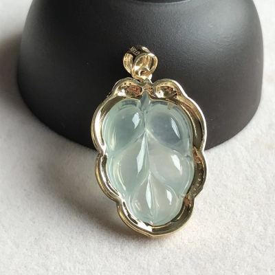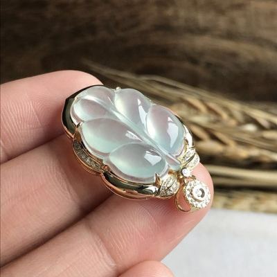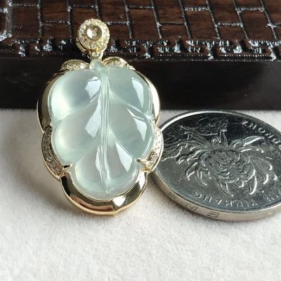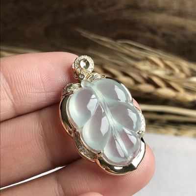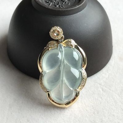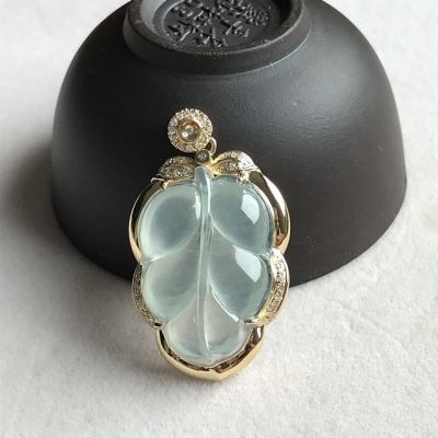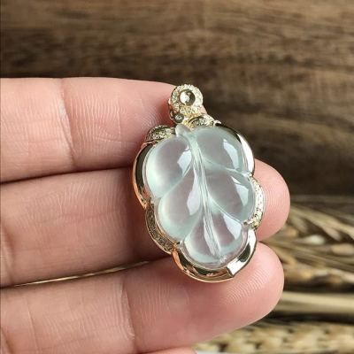 冰种叶子 翡翠挂件 整体尺寸32.2~19.3~7.8mm