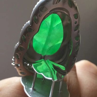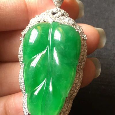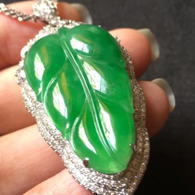 再看整件翡翠树叶饰品线条是否流畅清晰