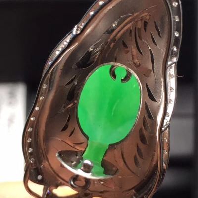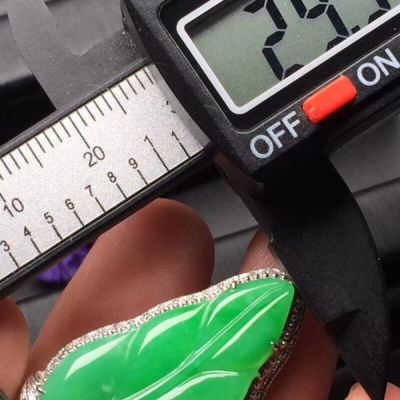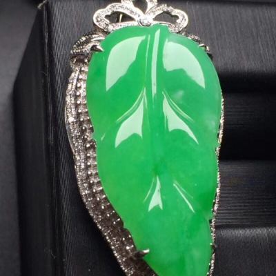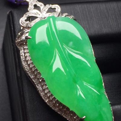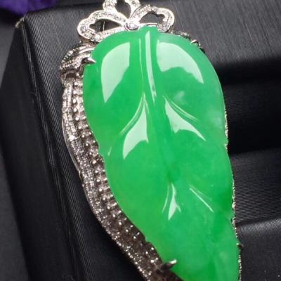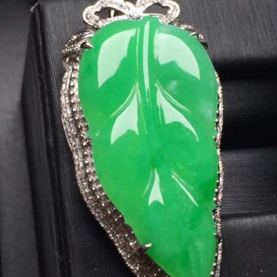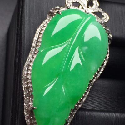 阳绿叶子 翡翠挂件 种水超好 玉质细腻