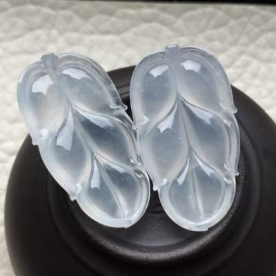 冰种叶子 翡翠挂件 尺寸:27.8*14.8*4.1