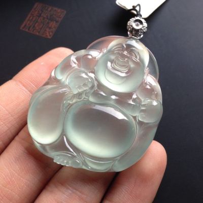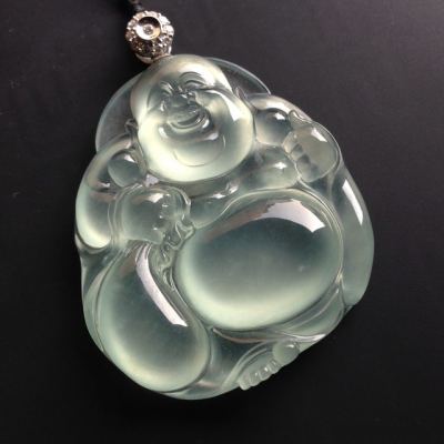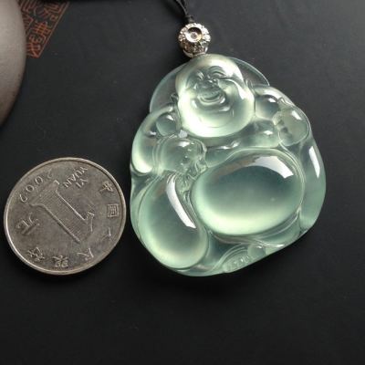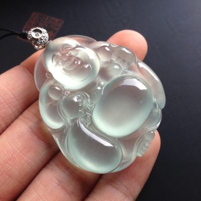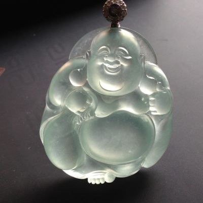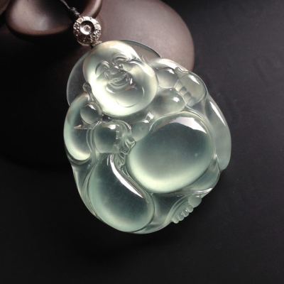 冰玻种晴底布袋佛 翡翠挂件 尺寸49-40-8mm