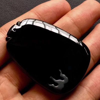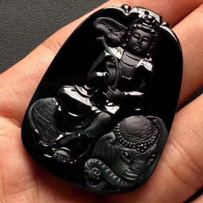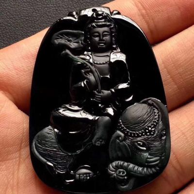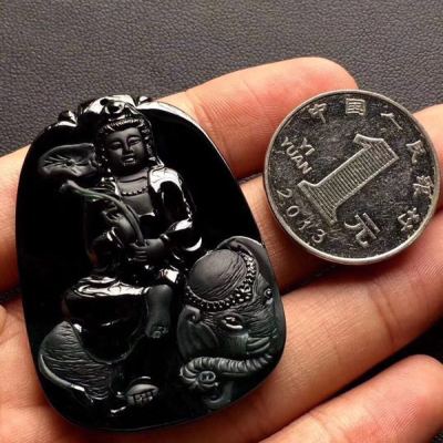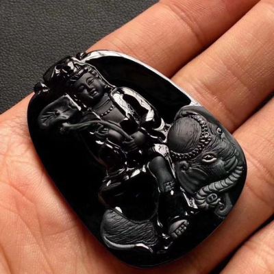墨翠普贤菩萨 翡翠挂件 尺寸:48.6* 33.8 *6.5mm