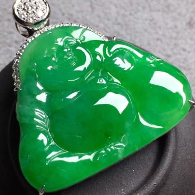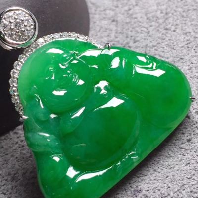 冰阳绿布袋佛 翡翠挂件 裸石尺寸26**32.7*3