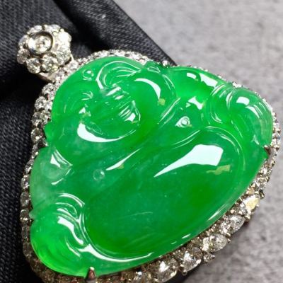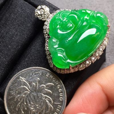 冰阳绿佛公 翡翠挂件 整体尺寸:33.4*31.8*11.6