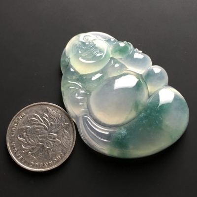 飘花布袋佛 翡翠挂件 尺寸55-40-8毫米