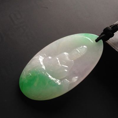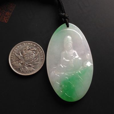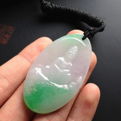 糯冰种春带彩观音 翡翠挂件 尺寸53-31-6mm
