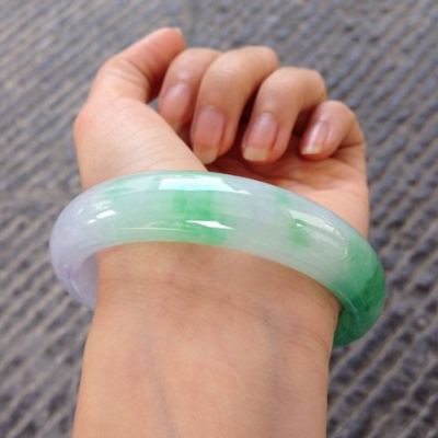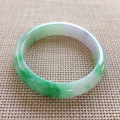 尺寸:57.9x13.6x8.3mm 水润翠色带紫翡翠手镯
