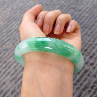 1.如果看到这个翡翠手镯颜色邪,闪!