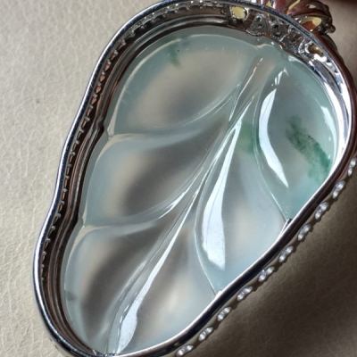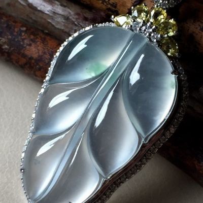 玻璃种叶子 翡翠挂件 裸石尺寸35.5*23*5