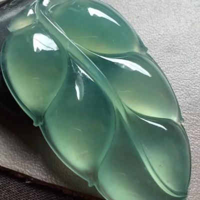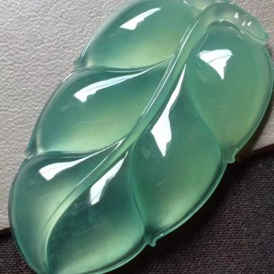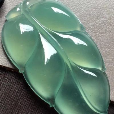 冰晴绿叶子 翡翠挂件 尺寸52*30.3*7