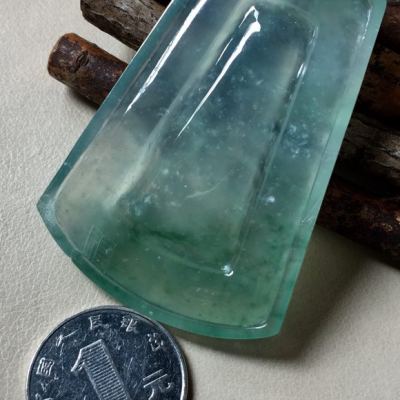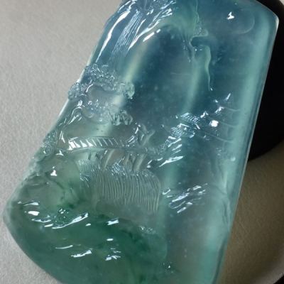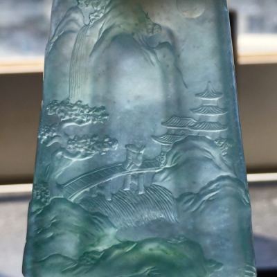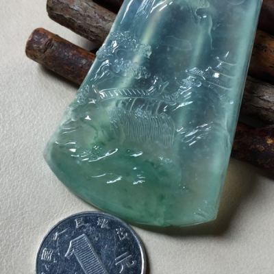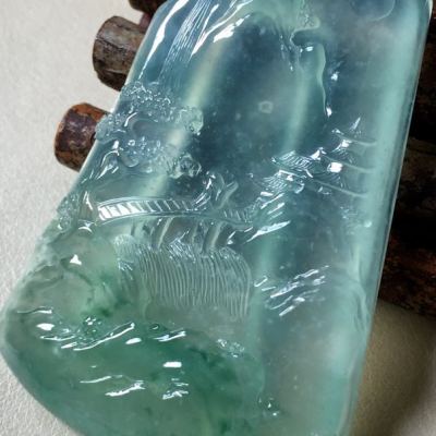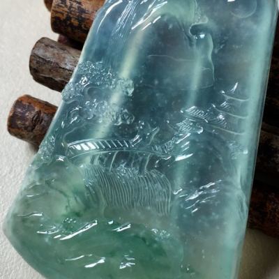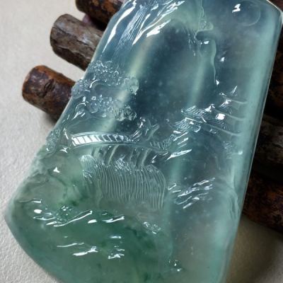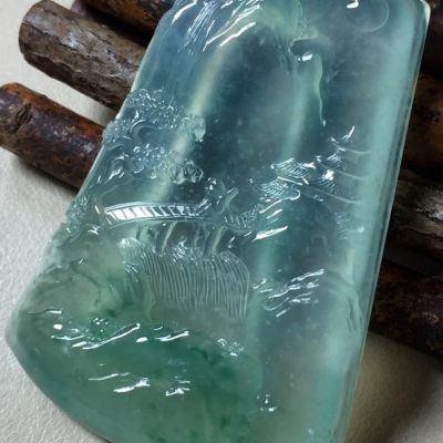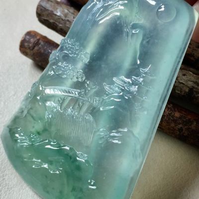 高冰浅绿底山水牌 翡翠挂件 尺寸63*44*7.5