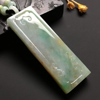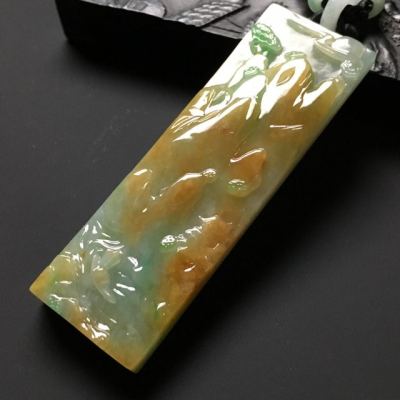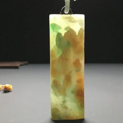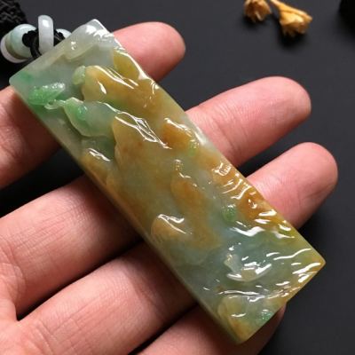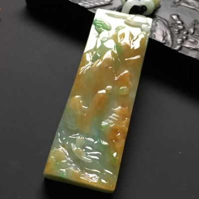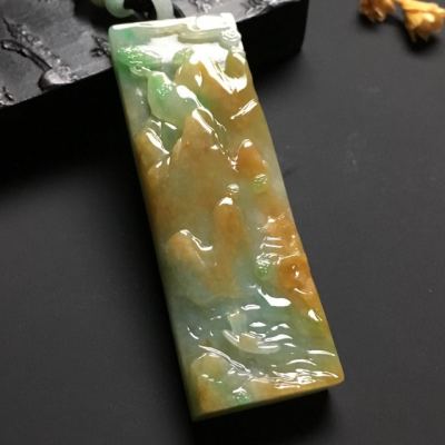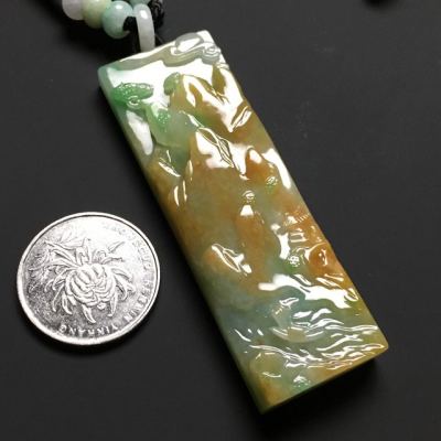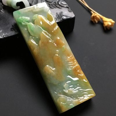 黄加绿山水牌 翡翠吊坠 尺寸72-24-8.5毫米