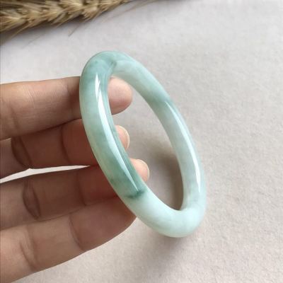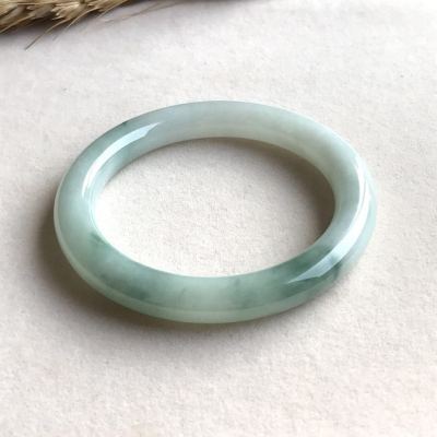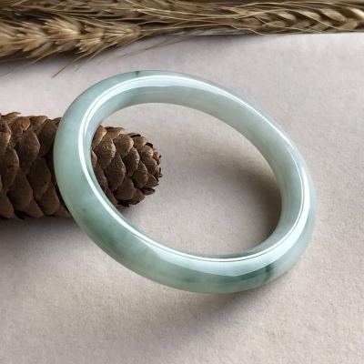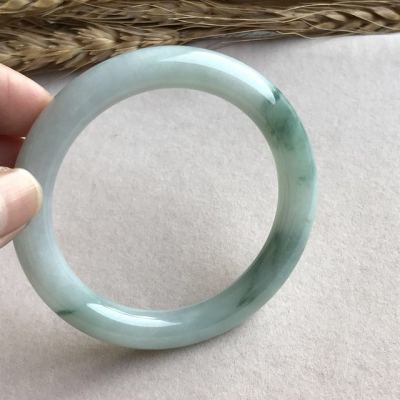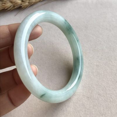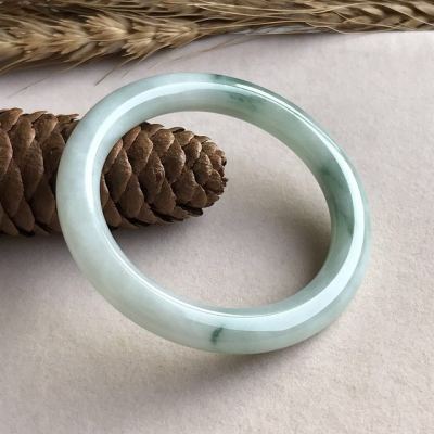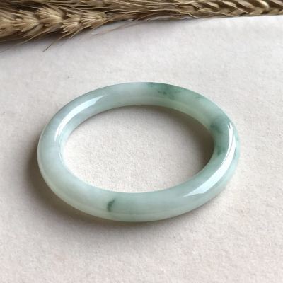 糯种飘花圆条翡翠手镯 尺寸53.1~8.7~9.1mm