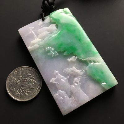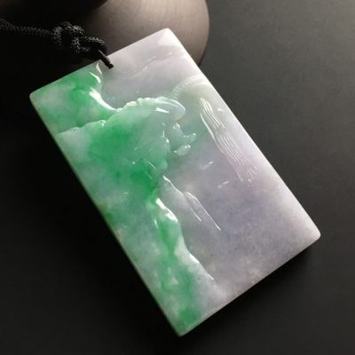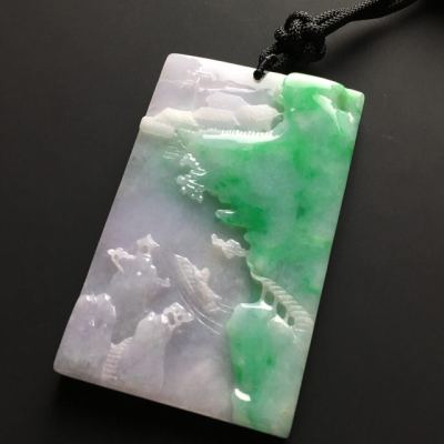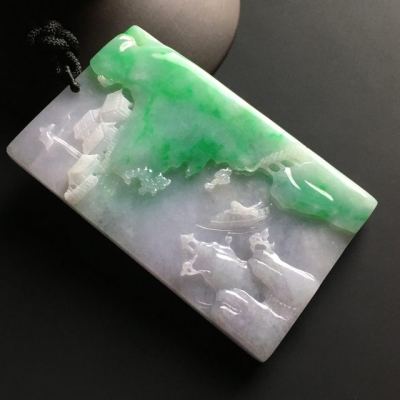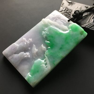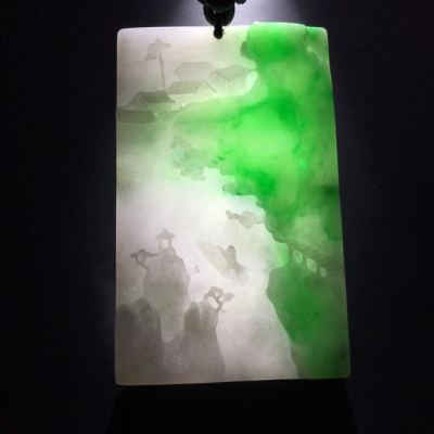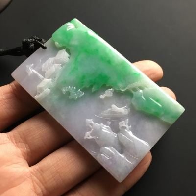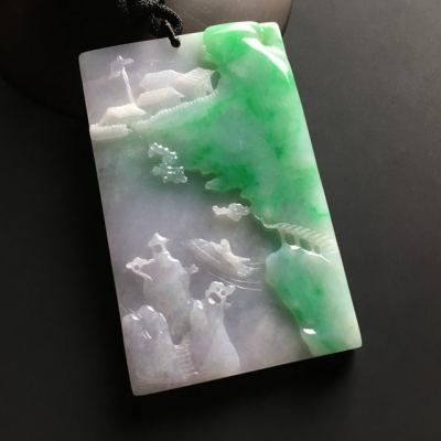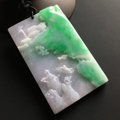 带色游山玩水 翡翠吊坠 尺寸71-45-7.5毫米