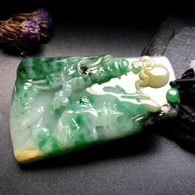 62-41-6mm黄加绿山水牌 翡翠吊坠