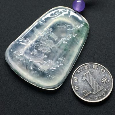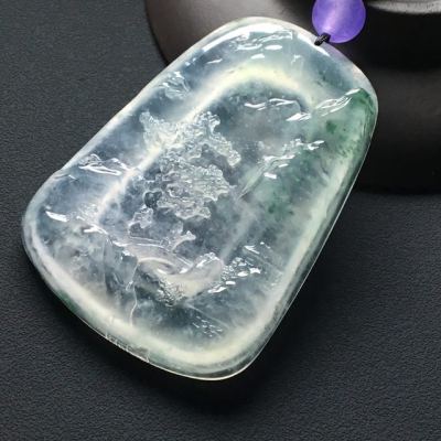 高冰种飘花大好河山 翡翠吊坠 尺寸:56-41-6毫米
