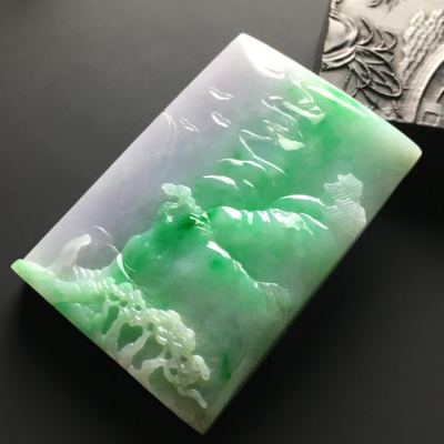 春彩登高望远 翡翠吊坠 尺寸58-41-10毫米