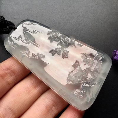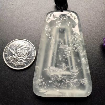 冰底雪花棉悠然自得 翡翠吊坠 尺寸: 68-42-9mm