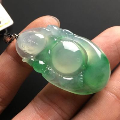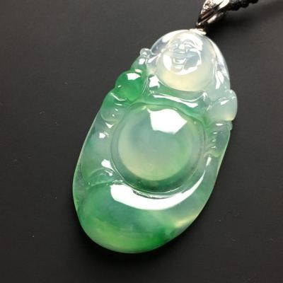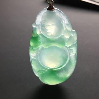 冰种飘绿布袋佛 翡翠吊坠 尺寸44-25-6.5毫米