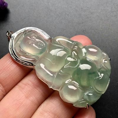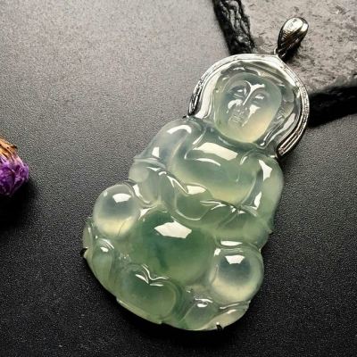 冰花观音 翡翠吊坠 裸石尺寸: 50.5-32.5-7mm