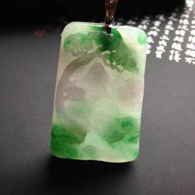糯冰种春带彩紫气东来 翡翠吊坠 尺寸48-32-6毫米