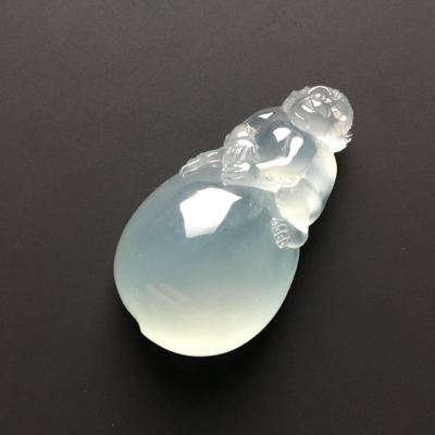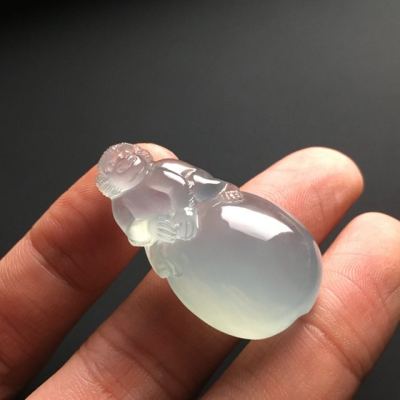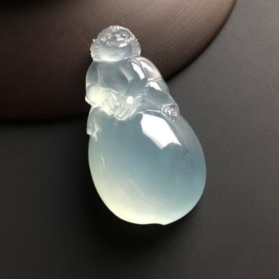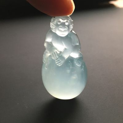 冰种灵猴献瑞 翡翠吊坠 尺寸39-21-12.5毫米