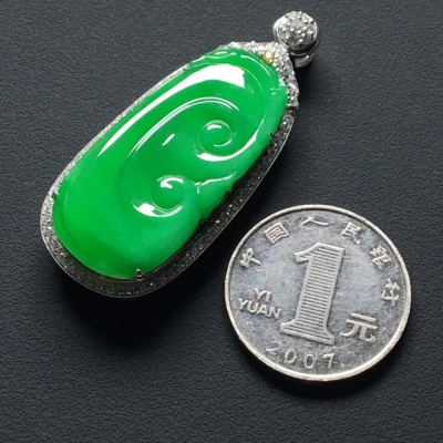 阳绿如意 翡翠吊坠 整体尺寸:51-22-9.8