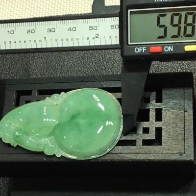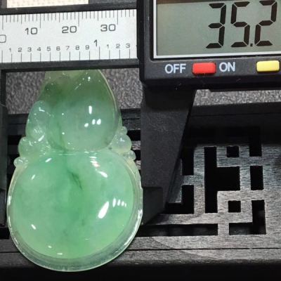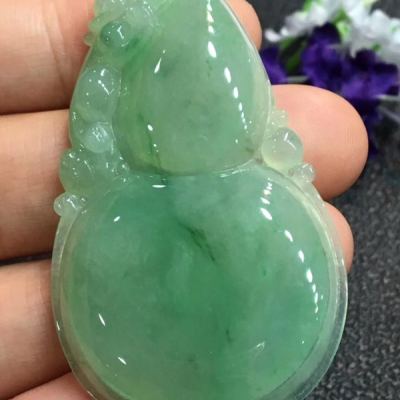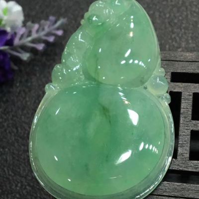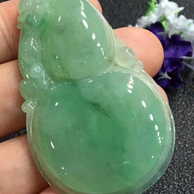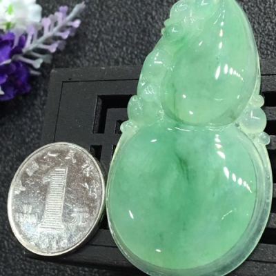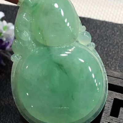 冰绿大葫芦 翡翠吊坠 冰地光泽