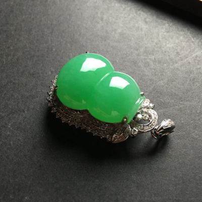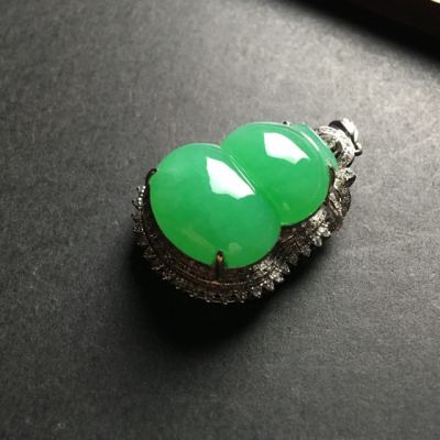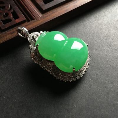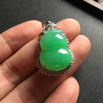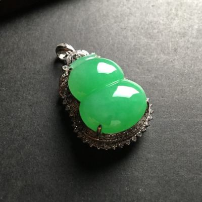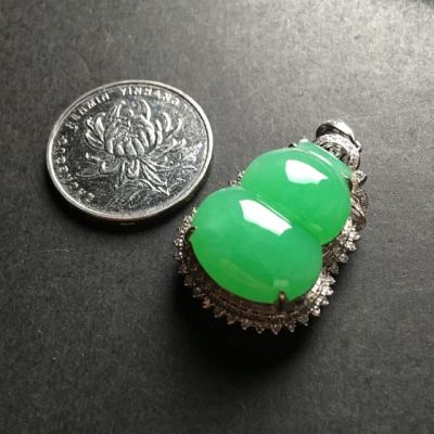 阳绿葫芦 翡翠吊坠 整体尺寸30-22-13毫米