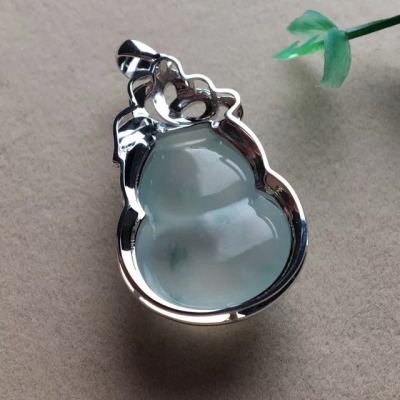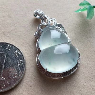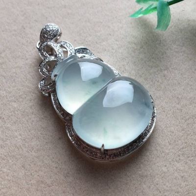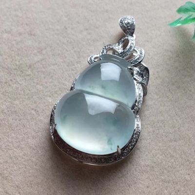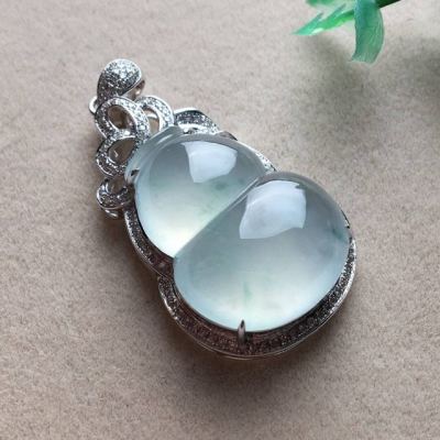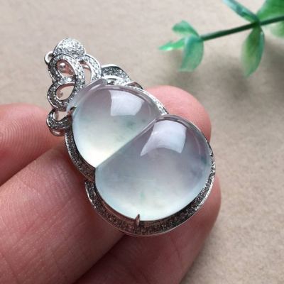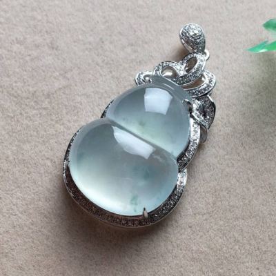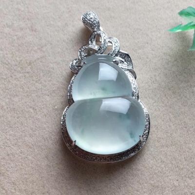 冰种飘花起荧光葫芦 翡翠吊坠 裸石尺寸23.2-18-7