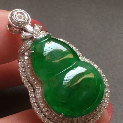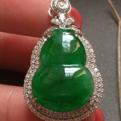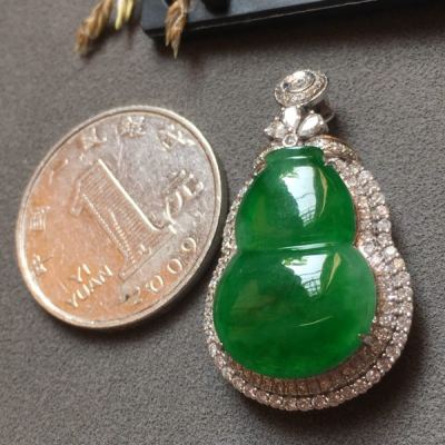 冰种满绿葫芦翡翠吊坠
