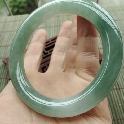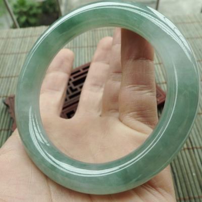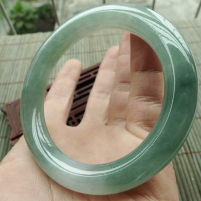 A货翡翠手镯 冰润飘绿圆条翡翠手镯55.3mm