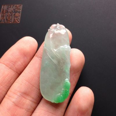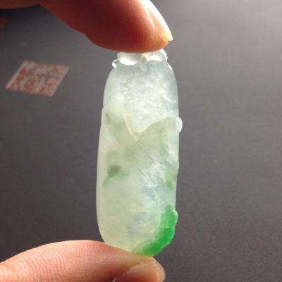 冰种飘翠 翡翠吊坠 尺寸44-16-6.5毫米