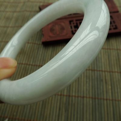 A货翡翠手镯 糯种浅绿圆条手镯56.3mm