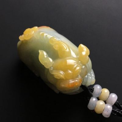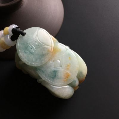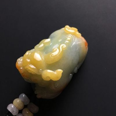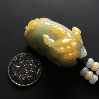 三彩招财貔貅 翡翠吊坠 尺寸47-28-26毫米