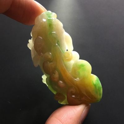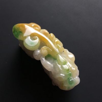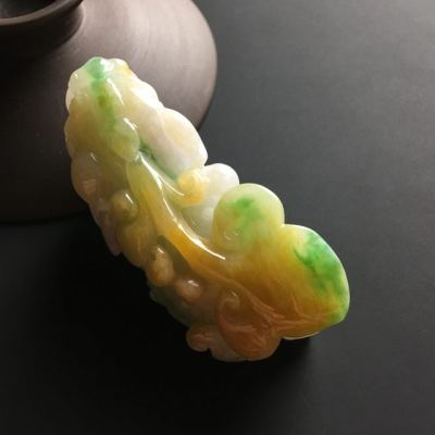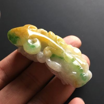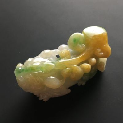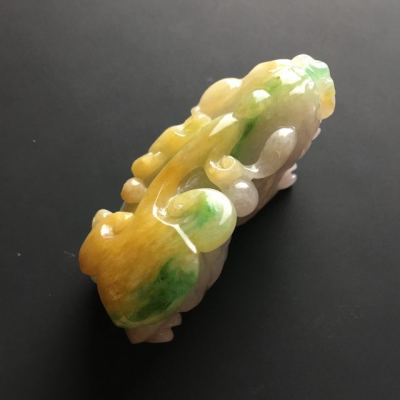 黄加绿招财貔貅 翡翠吊坠 尺寸50-23-22毫米
