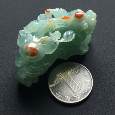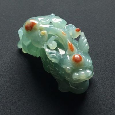 巧雕双彩招财貔貅 翡翠吊坠 尺寸:51-22-27.3毫米