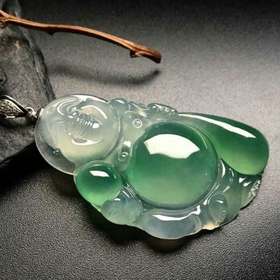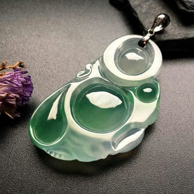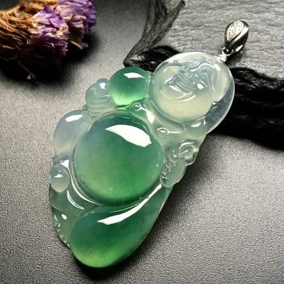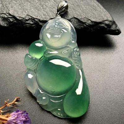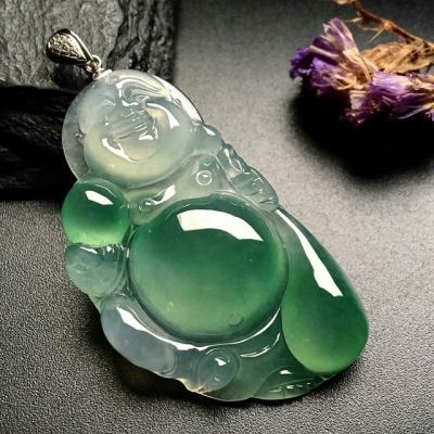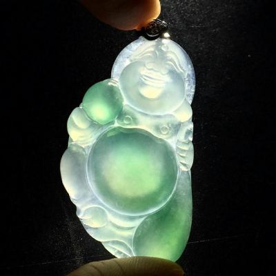 冰带色弥勒佛 翡翠吊坠 尺寸:44-24-6mm