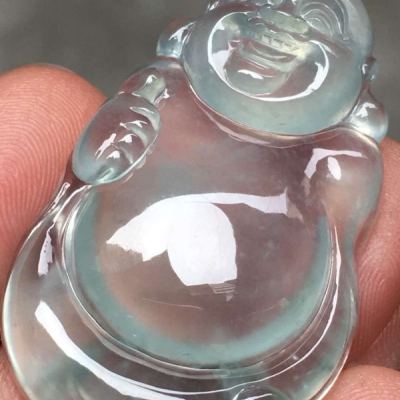 高冰种晴水逍遥佛 翡翠吊坠 尺寸:37.2*22*5.6mm