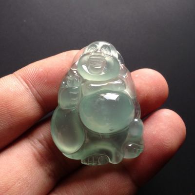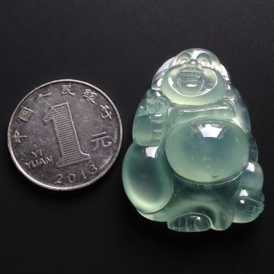 冰种晴底布袋佛 翡翠吊坠 尺寸39-29-11毫米