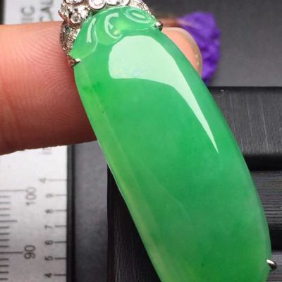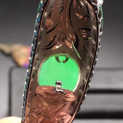 阳绿福瓜 翡翠吊坠 真金真钻镶嵌