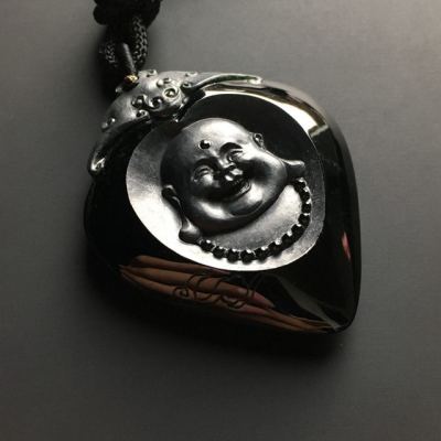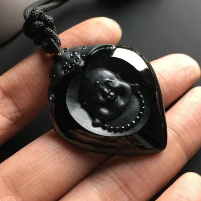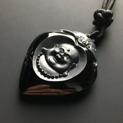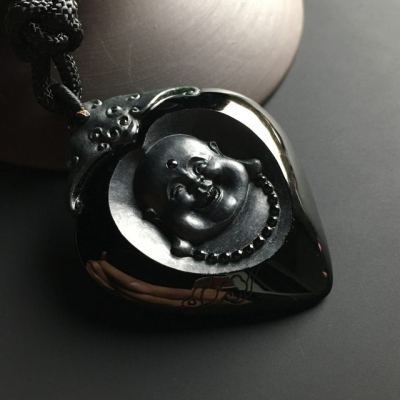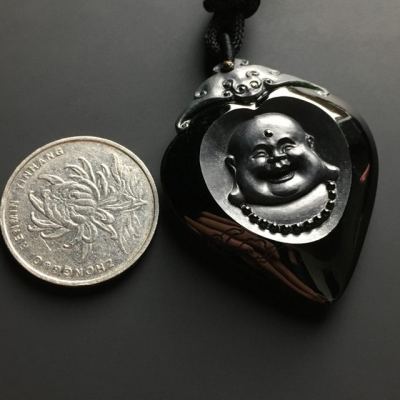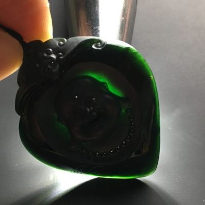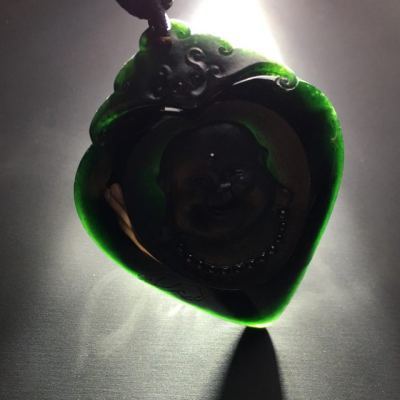 墨翠笑佛 翡翠吊坠 尺寸41-36-8毫米