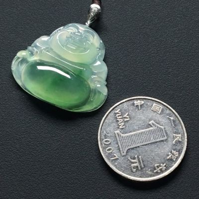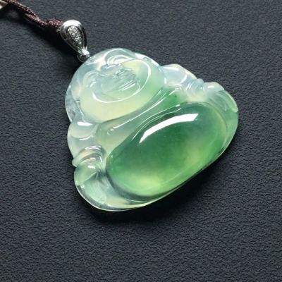 冰种飘花笑佛 翡翠吊坠 尺寸:26.5-30-6.5毫米