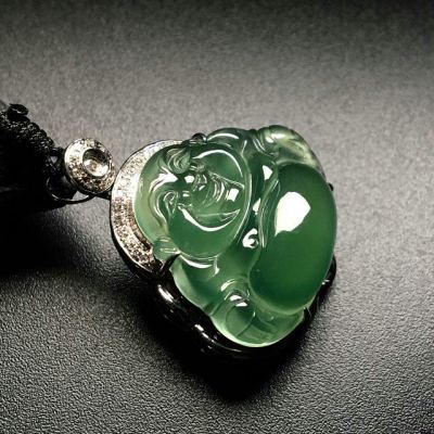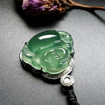 蓝水笑口常开 翡翠吊坠 尺寸: 裸17-21-5mm